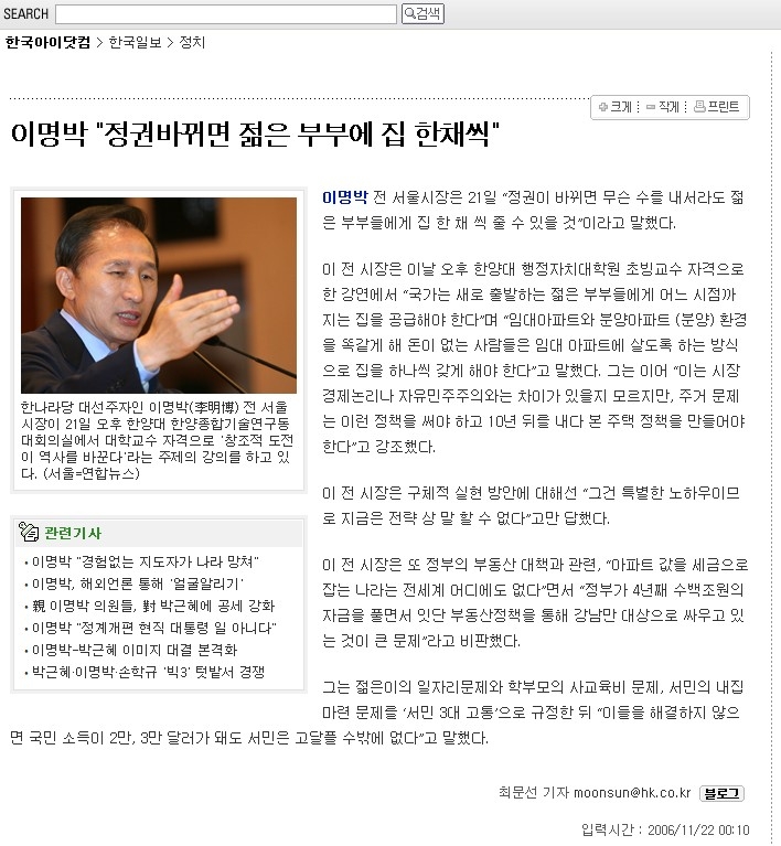 이명박 "젊은부부 집 한채씩 오해다.. 저거 나 아니다(먼산)"